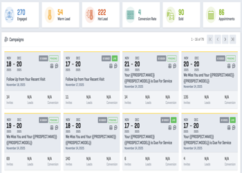 Dealers enjoy full visibility into real-time campaign metrics, including engagement and ROI analytics across all messaging and departments.
